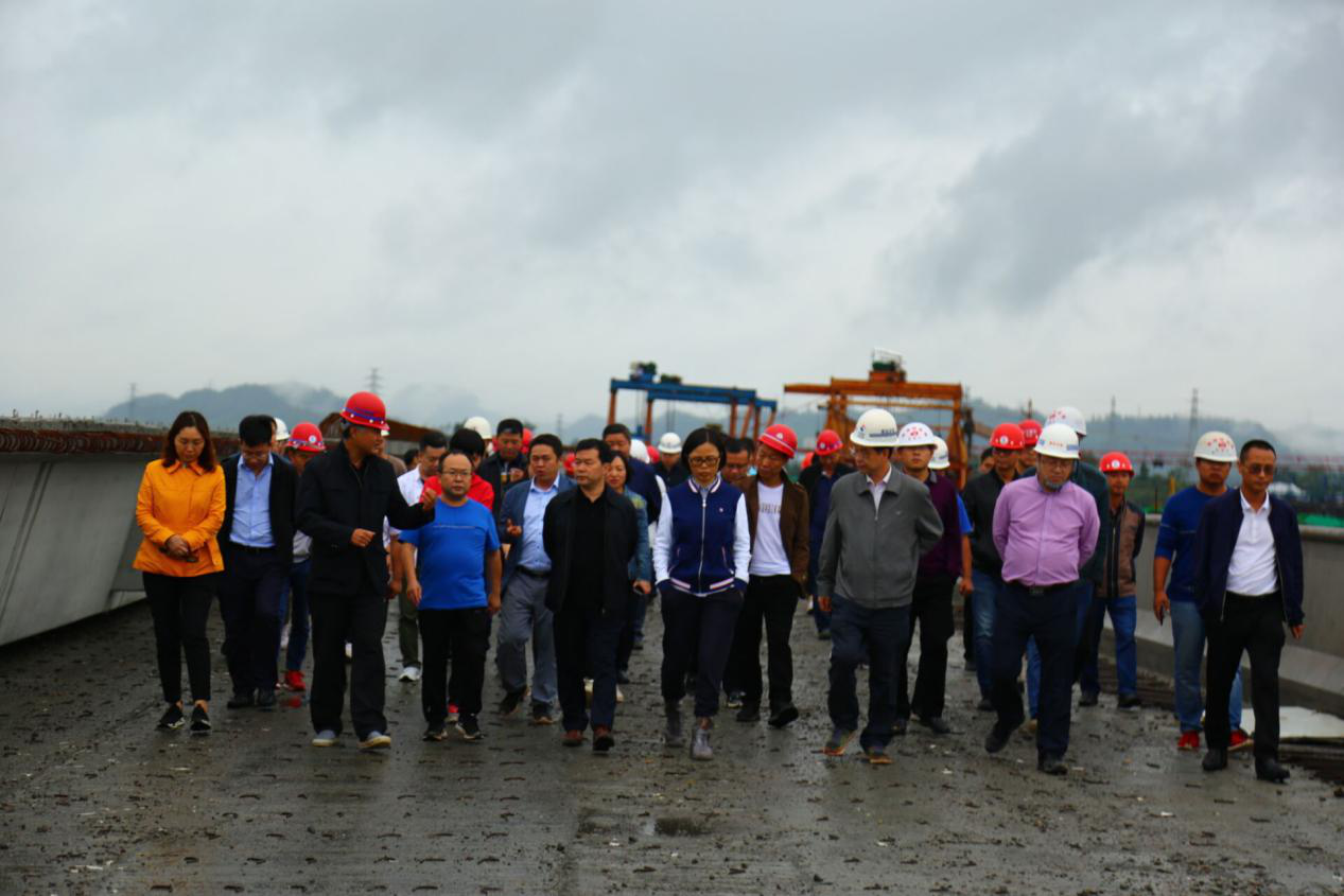 9月17日,集團(tuán)黨委書記、董事長、總裁謝應(yīng)文、常務(wù)副總裁駱曉紅等領(lǐng)導(dǎo)率集團(tuán)各職能部門負(fù)責(zé)人,在營達(dá)項(xiàng)目向年底通車目標(biāo)發(fā)起總攻、決戰(zhàn)決勝的關(guān)鍵時(shí)刻,冒雨深入營達(dá)高速項(xiàng)目施工一線現(xiàn)場督導(dǎo)慰問。營達(dá)公司總經(jīng)理謝應(yīng)武及參建單位負(fù)責(zé)人等陪同。