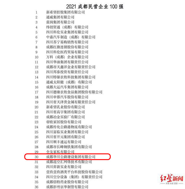 華川集團(tuán)蟬聯(lián)“成都企業(yè)雙百?gòu)?qiáng)”榜單